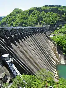The Komaki Dam is an arch-gravity dam on the Shō River about 2.5 km (1.6 mi) southeast of Shogawa in Toyama Prefecture, Japan. It was constructed between 1925 and 1930. The dam has an associated 90.2 MW hydroelectric power station which was commissioned in 1930. Of the nine dams on the Shō River it is the second-furthest downstream.[2]