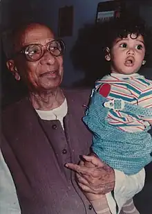 ![]() With his great grandson in 1990 | |