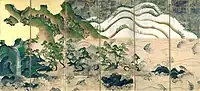 - ↑ 日月山水図 [Landscape of the four seasons] (in Japanese). Kawachinagano. Archived from the original on March 31, 2016. Retrieved March 9, 2018.