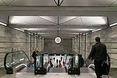 Kongens Nytorv station (Danish pronunciation: [ˈkʰʌŋŋ̍s ˈnyˌtsʰɒˀw], lit. King's New Square) is a Copenhagen Metro station located at Kongens Nytorv in downtown Copenhagen, Denmark. The station is located at the intersection of the M1/M2 and M3/M4 lines and is in fare zone 1. The station affords direct access to the Magasin du Nord department store.