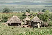 Konso society is largely agricultural and involves the irrigation and terracing of mountain slopes. Staple crops include sorghum and corn, with cash crops including cotton and coffee. Cattle, sheep, and goats are raised for food and milk.[7]