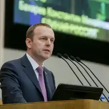 Konstantin Mikhailovich Bakharev (Ukrainian: Костянтин Михайлович Бахарєв; Russian: Константин Михайлович Бахарев; born 20 October 1972), is a Russian and former Ukrainian politician and journalist. He has been a member of parliament of the Russian State Duma, since 5 October 2016, and Deputy Chairman of the State Duma Committee on Financial Markets since 24 October 2019.[1] He is also a member of the Presidium of the General Council of the United Russia party, and the head of the interregional coordinating council of the party in the Southern Federal District.