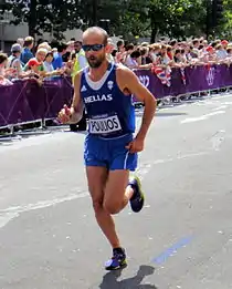 Konstantinos Poulios (born 19 September 1977) is a Greek long-distance runner. He was born in Athens and originates from Trikala. He competed in the marathon at the 2012 Summer Olympics in London, finishing in the 80th place with 2:33:17.[5]