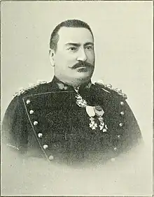 His qualifications and studies earmarked him for senior staff and command appointments.[8][11] In 1876 he published a manual for new officers.[8] By 1877, he was a captain.[12] In 1881, following the annexation of Thessaly and the Arta Prefecture, Smolenskis served in the commission for the drawing of the new Greek–Ottoman border.[8] On 16 July 1881 he was promoted to major.[13] In 1885–86, he led the fortification program in the new provinces, and received the Gold Cross of the Order of the Redeemer for his service.[8][14] This was followed later by Belgian and Serbian decorations.[14]
