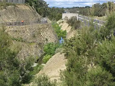 ![]() Koonung Creek, downstream from Blackburn Road, showing realignment works on the right | |