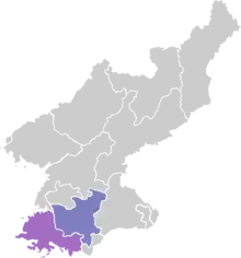 Hwanghae province has been divided into South Hwanghae province and North Hwanghae province since 1954. Thanks to the wide Yonbaek and Chaenyong plains, Hwanghae province is a granary of North Korea and is known for its good quality cereal production.[33] As the millet seeds produced in the region are thick, and have a good taste, they are eaten as much as barley is consumed by people of the southern region. The abundant production of cereal crops provides quality feed for livestock, so the quality of meat produced in the region is said to be good. Chicken raised in every household is fleshy and of good quality, and is used for many dishes in Hwanghae cuisine. It is used as an ingredient for wheat noodle dishes, and mandu (dumplings). The coastal area, adjacent to the Yellow Sea, produces a lot of salt because the tideland in the area is developed and there is little rainfall.[33] Due to the climate, kimchi in the Hwanghae region has a clear and refreshing taste, so its brine is used as a soup on many occasions. Dongchimi brine is used as a broth for naengmyeon (cold buckwheat noodle dish), or for mixing with a bowl of chilled rice to make a midnight snack. The Hwanghae people are known for kindheartedness and rustic simplicity, so their cuisine reflects their nature. Hwanghae dishes are savory and simple, with less decoration such as mandu made in a larger size than other regions. The general taste is moderate, similar to that of Chungcheong province.[3]