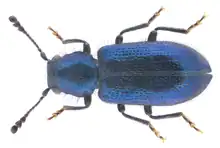 Korynetes caeruleus also known as the steely blue beetle is a predatory beetle in the family Cleridae. The species name is occasionally misspelled as "coeruleus" (e.g.,[1]), but the spelling caeruleus is preserved by Opinion 604 of the ICZN, issued in 1961.[2]