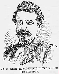 Kemper was elected as Superintendent of Alexandria Public Schools, serving from 1893 to 1909.[5][12] During this period, he was involved as a founding member of the Historic Alexandria Preservation Society.[13]