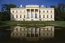 The principal landmark of the town is the New Kostelec nad Orlicí Castle. It was built in the Empire style in 1829–1833 for the Kinsky family. Following its return to the ownership of the Kinsky family in 1992, it was restored and opened to the public. The building houses the Kinsky Gallery and an exhibition of the history of the town. The castle complex includes a large park, which is protected as a nature reserve.[6]