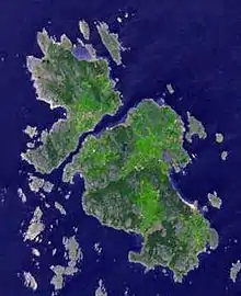 The Koster Islands (Swedish: Kosteröarna) situated 10 km west of Strömstad, Sweden, comprises an archipelago surrounding the two largest islands, South Koster and North Koster. South Koster has an area of 8 km2 and North Koster an area of 4 km2. The landscape, dominated by smooth bedrock, bears witness to volcanic activity and subsequent wear due to the Ice Age. The rocky coastline is broken by many sandy beaches the largest being Kilesand on South Koster's east side overlooking the 200 meter deep Koster Fjord.