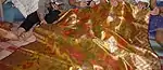 Most Kota Doria or Kota Doriya saris are made on power looms in Surat and Varanasi and may be hand block printed, embroidered or hand finished in a variety of ways. The fabric is also used as dress fabric and for stoles and dupattas.