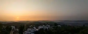 The district is bordered by hills in the east, and the Vembanad Lake and paddy fields of Kuttanad on the west. The area's geographic features include paddy fields, highlands, and hills. As of the 2011 census, 28.6% of the district's residents live in urban areas, and it reports a 97.2% literacy rate.[3] In 2008, the district became the first tobacco-free district in India.[4] Kottayam registered the lowest Multidimensional Poverty Index (MPI) of zero among all districts of India, indicating no deprivation as per the report published by Oxford Poverty and Human Development Initiative and UNDP for districts across India.[5]
