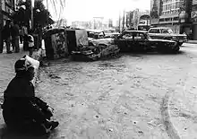 The Koza riot (コザ暴動, Koza bōdō) was a violent and spontaneous protest against the US military presence in Okinawa, which occurred on the night of December 20, 1970, into the morning of the following day. Roughly 5,000 Okinawans clashed with roughly 700 American MPs in an event which has been regarded as symbolic of Okinawan anger against 25 years of US military occupation.[1][2] In the riot, approximately 60 Americans and 27 Okinawans were injured, 80 cars were burned, and several buildings on Kadena Air Base were destroyed or heavily damaged.[3][4]
