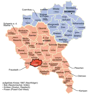 In 1905, these police districts (German: Polizeidistrikt) served towns in Kreis Lissa: