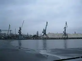 - ↑ "Harbor cranes at cargo port on river Dnieper in Kremenchug, Ukraine". dreamstime. Retrieved April 29, 2022.