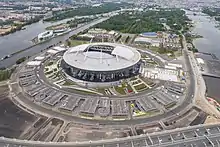 Krestovsky Island (Russian: Крестовский остров) is a 3.4 km2 island in Saint Petersburg, Russia, between several tributaries of the Neva: the Srednyaya Nevka, the Malaya Nevka and the Krestovka. The island is served by the Krestovsky Ostrov station of Saint Petersburg Metro. Until recently, the western part of the island was occupied by the Maritime Victory Park, where the international Goodwill Games of sports and athletics competition took place in 1994, which was the first large scale post-Soviet Union international event in Russia.[1] A new stadium, Gazprom Arena, is located where Kirov Stadium was. The stadium serves as home for FC Zenit Saint Petersburg.
