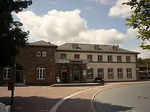 During the renovation of the station building in 2007 and 2008 it was rebuilt as a Kulturbahnhof ("culture station”) with offices, shops, a dining area and two art studios.[6] Two well-known artists from the region, Annette Besgen and Ulrich Langenbach have their studios there with an area of 100 square metres. In a small gallery in the foyer with a total area of 40 square metres of exhibition space, three to four exhibitions from all areas of fine art are held each year under the motto "scene change" (szenenwechsel).