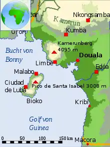 - ↑ "Distance between Douala Obs. () Airport) and Kribi () (Airport) (Cameroon)". distancecalculator.globefeed.com. Retrieved October 27, 2019.