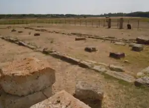 The sanctuary of Apollo Aleus had 4 phases, the oldest being "Greek-Italic" probably in wood, from 7th century until the end of the 6th century BC. The monumental rebuilding of the sanctuary using Greek architecture took place from the first half of the 6th century BC.[2]