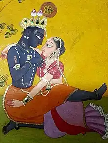 Painting of Krishna and Radha, whose love is a central theme of this work.