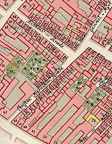 Barnikow's former property remained the by far largest property in the narrow street. It was listed in the new cadastre of 1756 as No. 45 in Købmager Quarter, owned by restaurateir Johan Georg Egner. The smaller corner property on the other side of the street was listed as No. 46 in Købmasger Quarter, owned by book binder Johan Fredeirk. The rest of the street was lined with mostly very small properties. The propertoes on the east side of the street were listed from north to south as No. 287–302. The properties on west side of the street (adjacent to Barnekow's former property) were listed from south to north as No. 303309.