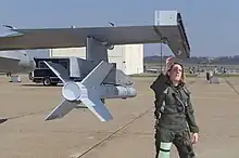 - ↑ Department of Defense. Department of the Navy. Naval Imaging Command. 1988-ca. 1993 (Predecessor); Department of Defense. Defense Audiovisual Agency (Predecessor); Department of Defense. American Forces Information Service. Defense Visual Information Center. 1994- (4 April 2002). "Technical Sergeant (TSGT) Kevin J. Jones, USAF, Crewchief, assists Second Lieutenant (2LT) Kristin L Bass, USAF, as she prepares to egress her F-16C Fighting Falcon after her first unit training flight. Both are with the 188th Fighter Wing, Arkansas Air National Guard, Fort Smith, Arkansas" – via US National Archives Research Catalog.