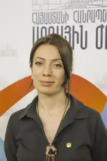 In May 2018 she assumed a position as an assistant for the First Deputy Prime Minister. She resigned in January 2019 after she was elected to the National Assembly of Armenia in the Parliamentary elections of December 2018 representing the Civil Contract.[1] She is a supporter of the LGTB community of Armenia[2][3] and also the improvement of the inter-parliamentarian cooperation between the parliaments of Nagorno Karabakh and Armenia.[4]