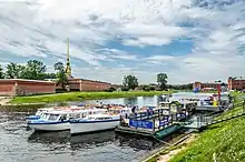 The Kronverksky Strait (Russian: Кронверкский пролив) is a narrow channel separating Petrogradsky and Zayachy islands in Saint Petersburg, Russia.[1] It forms an arc approximately 1 kilometre (0.6 mi) long, about 50 metres (160 ft) wide and 4 metres (13 ft) deep. To the south is Zayachy Island, which is dominated by the Sts. Peter and Paul Fortress, and to the north is the Kronverk on Petrogradsky Island. It is spanned by the Kronverksky Bridge to the east and the Ioannovsky Bridge to the west.