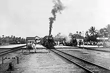 Since the inauguration of the Eendaagsche Expres (one-day express) train by the Staatsspoorwegen (SS) on 1 November 1929, this station has been used as a place for the merger of the Eendaagsche Expres train which serves the Batavia–Soerabaja route with its feeder (KA feeder) coming from Bandung.[3]