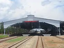 Kroya Station has nine railway lines. Initially, line 2 was a straight line in the direction of Bandung or Cilacap or Kutoarjo; line 3 is a straight line to and from Purwokerto; lines 1, 4 and 5 are used as lines for crossing and overtaking trains; lines 6 and 7 as lanes for the parking of freight trains and boiler trains; as well as lines 8 and 9 as connecting lines to the locomotive depot, train workshops, and UPT Mechanic Depot. After the double line was operated on this cross-station segment up to Purwokerto Station as of 5 March 2019[4][5] and then the plot of this station up to Kemranjen Station as of 31 July 2019,[6] line 2 is now only used as a single track straight line from and only towards Bandung and Cilacap, line 4 is used as a double track straight line towards Kutoarjo, line 5 is used as a double track straight line towards Purwokerto, and lines 1, 3 and 6 are used as lines for crossing and overtaking trains.