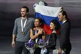 Ksenia Andreyevna Stolbova (Russian: Ксе́ния Андре́евна Столбо́ва; born 7 February 1992) is a retired Russian pair skater who skated with Andrei Novoselov and Fedor Klimov. She is the 2014 Olympic silver medalist, the 2014 Olympic champion in the team event, the 2014 World silver medalist, a three-time European medalist (2012 bronze, 2014, 2015 silver), the 2015–16 Grand Prix Final champion, the 2013 Winter Universiade champion, a two-time World Junior medalist (2010 bronze, 2011 silver), and a three-time Russian national champion (2014, 2015, 2017). Stolbova announced her retirement from competitions on 12 February 2020.[1]