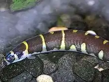The true Kuhli loach (Pangio kuhlii), occasionally referred to as eel loach, is a small eel-like freshwater fish belonging to the loach family (Cobitidae). They originate from the island of Java in Indonesia.[2][3] This snake-like creature is very slender and nocturnal.