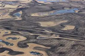 ![]() Aerial view of snow geese flying over potholes in the Kulm Wetland Management District | |