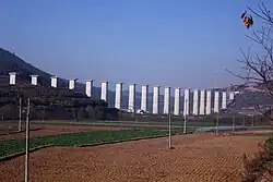 • Yuxi–Mohan railway, 503 km standard gauge railway from Yuxi to Mohan at the border with Laos. This line was originally planned to begin construction by the end of 2010, but was delayed. Construction of a railway logistics hub in Mohan began in early 2011.[23] Construction began in 2016 and was completed in 2021.