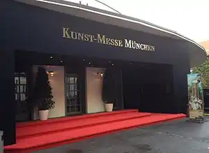 The Kunstmesse München set out in 1956 as Deutsche Kunst und Antiquitätenmesse under the conceptual sponsorship of the Deutscher Kunsthandelsverband. Until 1988, the leading event of its kind, it took place in the Haus der Kunst in Munich. Thereafter it was, for reasons of space, relocated to the Messe München (Munich Trade Fair), finally in the fairground at Riem.[2] After a re-organization (and a transitory name change to Fine Art & Antiques for legal reasons), the historic Postpalast in Munich was determined as the venue.[3]