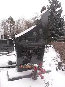 The Kuntsevo Cemetery (Russian: Ку́нцевское кла́дбище, romanized: kúntsevkoye kládbishche) is a cemetery servicing Kuntsevo, Moscow. It is located on the bank of the Setun River, to the south of the Mozhaisk Highway (the continuation of the Kutuzovsky Prospekt).[1] The local five-domed church was commissioned in 1673 by Artamon Matveyev. The cemetery is administered as part of the Novodevichy Cemetery complex.