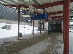 Kupittaa railway station (Finnish: Kupittaan rautatieasema, Swedish: Kuppis järnvägsstation) is located in the Kupittaa district of Turku, Finland. The station is located about three kilometres from the Turku Central railway station in the immediate vicinity of the Turku Science Park. All trains between Helsinki and Turku stop at Kupittaa. However, due to construction work between here and Turku, Kupittaa is the terminus of the min from Helsinki from August 2022 until the end of 2024. Signalling is handled from Turku Central railway station. The station has bus connections to Föli lines 32, 42, 58 and 110.