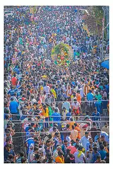 Kuppam and surrounding areas like Tirupati, Chittoor, Punganur, Vaniyambadi and Gudiyattam. To mark this event, the annual jatara is celebrated in Kuppam.[10] "Peddapuli Gangamma Jatara" is one of the important and the oldest festivals of Kuppam dedicated to the Hindu Goddess Peddapuli Gangamma Devi. "Aadi Krithika" is one of the important and the oldest festivals of Kuppam dedicated to the Tamil Hindu God Subrahmanyaswamy in the month of July or August (Aadi month - Tamil calendar). Other popular festivals in Kuppam are Ugadi, Ram Navami, Eid ul-Fitr, Ganesh Chaturthi, Deepawali and Christmas.