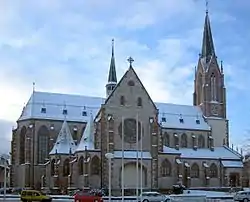 - The neo-Gothic city church of St. Sebastian was built in 1902–1905, including the older bell tower, according to plans by the Karlsruhe architect Johannes Schroth.