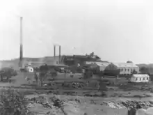 The railway reached the township by 1910. A sanitary system was installed in 1911, after a four-month typhoid epidemic, and a hospital erected by 1913, run by Dr. Old.[4] It was described as the best and most modern hospital in the northwest. At its height the town supported six hotels, five stores, four billiard saloons, three dance halls and a cinema, two ice works and one aerated waters factory, and Chinese gardens along the creek.[5]: 50 There were also drapers, fruiterer, butcher, baker, timber merchant, garage, four churches, police station, court house, post office, banks and a school with up to 280 pupils. A cyclone in December 1918 damaged the town and wrecked part of the powerhouse and smelter.[1][4]