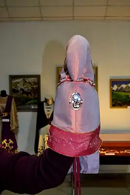 First mentioned in a 17th-century article list of Russian ambassadors describing their route through the Ingush lands to Georgia,[2] researchers consider Kurkhars, like the Bashlyk, in historical and cultural relationship with the ancient headdress of the Scythians and Phrygians, via the so-called "Phrygian cap", which was also most notably worn by the Persians, Thracians and Dacians.[3][4][5]