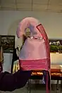 Kurkhars (Ingush: Курхарс) is the traditional female headdress of the Ingush. Its male counterpart is the Bashlyk. It was traditionally weekend clothing of the Ingush, worn during the holidays and for "going out". They are usually made of red felt or dense cloth and were originally made out of tanned and dyed bull scrotum. They are high caps in the form of a ridge with a forward curve and forked end.[1]