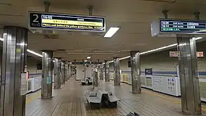 There is an elevator from the platform to the west wicket (exit 2 & 3). To the left of the wicket is an elevator to the ground floor.