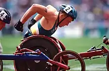 Kurt Harry Fearnley, AO PLY[1][2] (born 23 March 1981) is an Australian wheelchair racer, who has won gold medals at the Paralympic Games and crawled the Kokoda Track without a wheelchair. He has a congenital disorder called sacral agenesis which prevented fetal development of certain parts of his lower spine and all of his sacrum. In Paralympic events he is classified in the T54 classification. He focuses on long and middle-distance wheelchair races, and has also won medals in sprint relays. He participated in the 2000, 2004, 2008, 2012 and 2016 Summer Paralympic Games, finishing his Paralympic Games career with thirteen medals (three gold, seven silver and three bronze).[3][4][5] He won a gold and silver medal at the 2018 Commonwealth Games and was the Australian flag bearer at the closing ceremony.