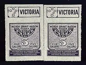 On 17 June 1941 the Prime Minister, Robert Menzies announced further restrictions to motorists limiting them to two gallons per month which were enough for 1,000 miles per year so many simply put their cars up on blocks for the duration and switched to public transport or walked. The scheme finally devised for petrol rationing coupons was complicated, and the paperwork was profuse.[5] Drivers had to apply for a petrol licence, from which they were allocated ration tickets based on an assessment of their needs.