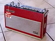 Kurzwellen is one of a series of works dating from the 1960s which Stockhausen designated as "process" compositions. These works in effect separate the "form" from the "content" by presenting the performers with a series of transformation signs which are to be applied to material that may vary considerably from one performance to the next. In Kurzwellen and three subsequent works (Spiral for a soloist, Pole for two, and Expo for three), this material is to be drawn spontaneously during the performance from shortwave radio broadcasts.[1] While this separate treatment of the genetic rules for development had existed in Stockhausen's earlier compositions, the emphasis on the process of transformation and less specificity of what is to be transformed is taken further than ever before in Kurzwellen.[2] The overall formal process is therefore fixed, whereas the sound materials are extremely variable.[3] The processes, indicated primarily by plus, minus, and equal signs, constitute the composition and, despite the unpredictability of the materials, these processes can be heard from one performance to another as being "the same".[4] While the use of radios in concert works dates back at least to 1942 with John Cage's Credo in Us, and Stockhausen may well have gotten the idea of using radios from Cage, their approaches could not have been more different. For Cage, the type of radio is a matter of indifference, since their purpose is merely to fill in prescribed time units with any sort of sound at all. Stockhausen, on the other hand, prescribed shortwave receivers because of their capability of bringing in broadcasts from far away, and for the rich variety of available sounds. These sounds are also not used indiscriminately: the performers are to search for and select only materials suitable for improvisational transformations.[5]