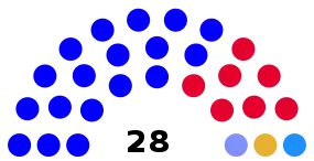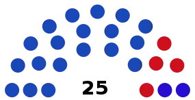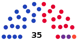The members of the Sakrebulo are selected through a mixed electoral system. Of the 35 seats, 7 are filled through direct elections in local districts of the city. The remaining 28 members are chosen by political parties and are apportioned according to their support citywide. From 2017 counsel had 18 members from the ruling Georgian Dream, 14 from the United National Movement, 2 from For Georgia and 1 from Strategy Aghmashenebeli.[5]