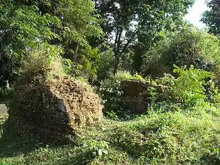 There are three collapsed brick towers arranged in a north–south row on a raised earth all facing to east. The platform of the central tower is brick but the other two are built in laterite.[2]
