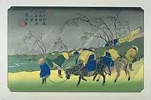 Keisai Eisen's print of Kutsukake-shuku, part of The Sixty-nine Stations of the Kiso Kaidō series