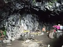 Kuys Varvara (the Virgin Barbara) is a revered religious figure in parts of Armenia, and the Tsaghkavank (Flower Monastery) is a cave shrine devoted to her on the southern slopes of Mount Ara.[1] The mossy cave is reported to contain a spring, held as sacred by some believers. An altar, ferns, and candle vendors are also around the shrine. Legend holds that Saint Barbara was martyred by her cruel father for espousing Christianity. She is one of the saints of the Armenian Apostolic Church.